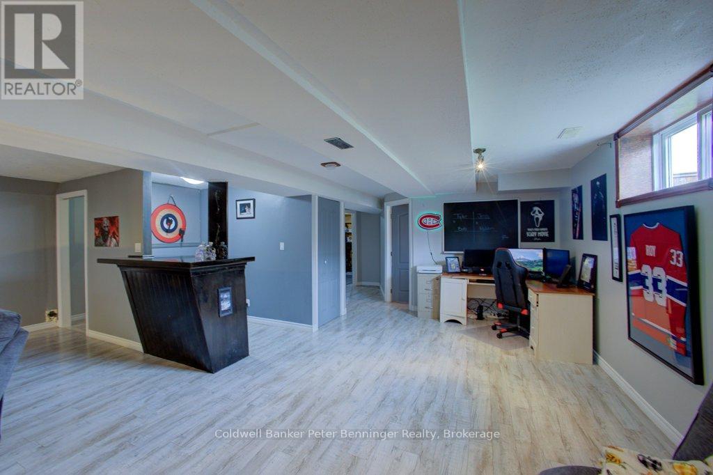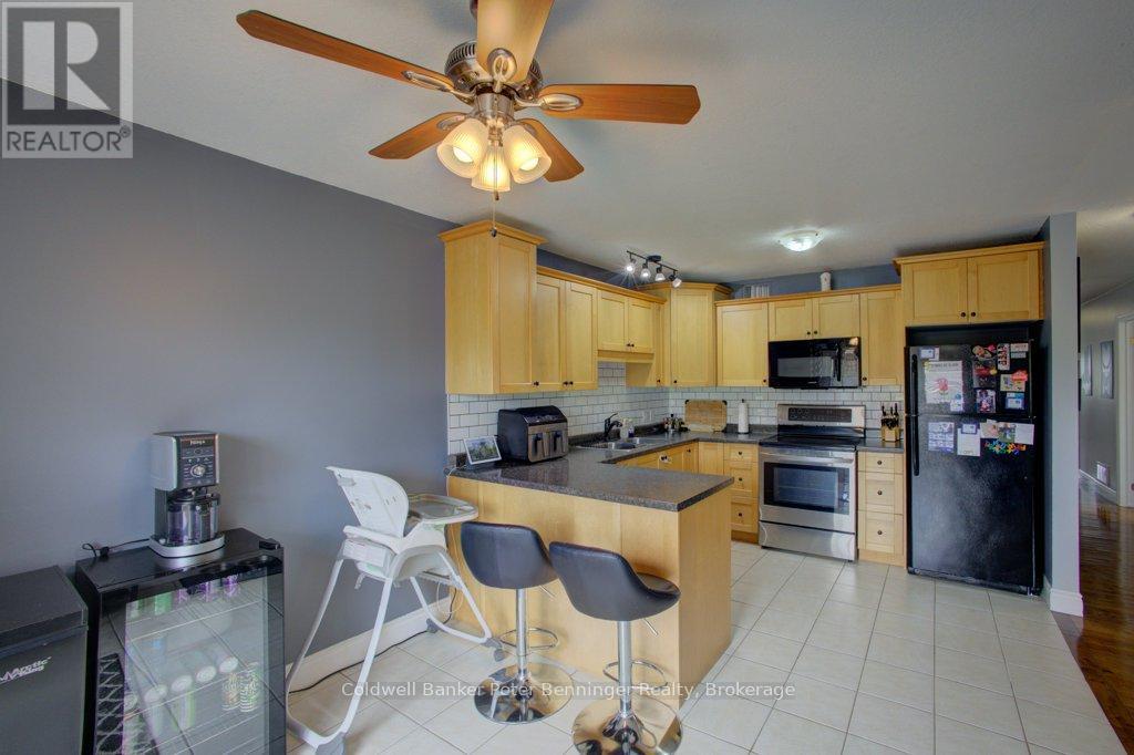 Excellent value and location for your family right here! Consider this raised bungalow semi detached brick sided home backing on to the far end of the school playground! This property has a great lawn, deck out the back and a fully fenced-in back yard. Front yard is immaculate and ready for your green thumb! Roomy concrete driveway offers plenty of parking and the approx 10 X 20 ft garage fits 1 more! Inside has a ton of finished living space including extra's like 2 eating areas, Primary Bedroom ensuite, and a spacious Kitchen that is well placed near the sunny back deck. Oak stairway to the basement leads you to the large Family Room flanked by a bar space, open Office area and 4th Bedroom. Further back you'll find a lovely Bathroom with a glass shower, Utility and Workout rooms. Home is heated with natural gas forced air and has central air conditioning. The Village of Paisley is a great place to live, centrally located in Bruce County close to the sandy beaches of Lake Huron and excellent shopping. Paisley is known for its events, food, recreation, art and is a place that has almost all needful amenities. Book your showing today! (id:47966)