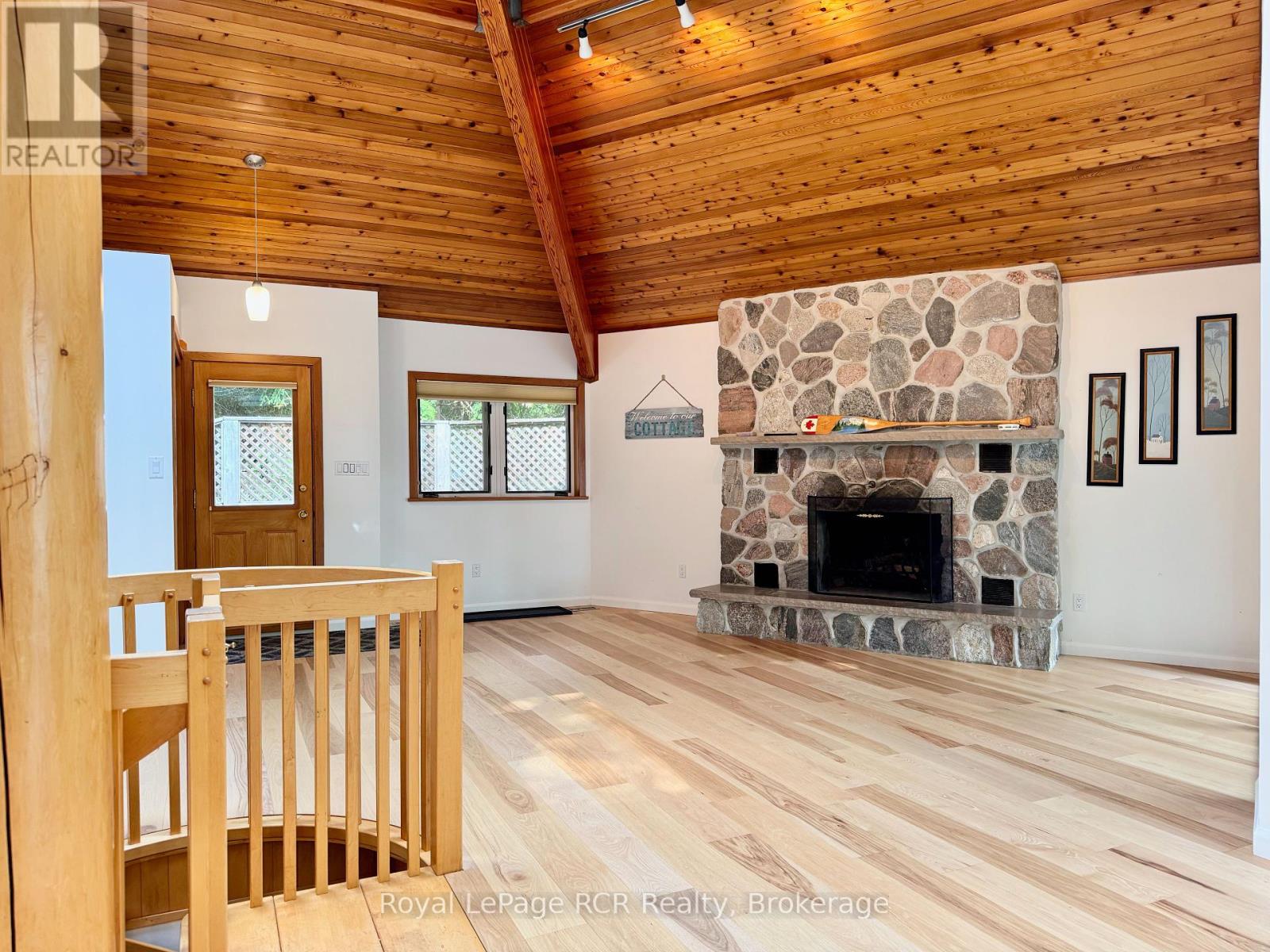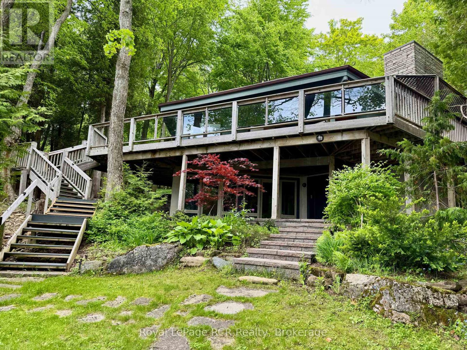 Architecturally UNIQUE, custom 4-SEASON WATERFRONT PROPERTY in EXCLUSIVE JACKSON COVE on Georgian Bay. This HEXAGON-INSPIRED Contemporary Design offers 4 bedrooms, 3 bathrooms, OPEN-CONCEPT LIVING SPACE featuring a CUSTOM VAULTED WOOD CEILING with skylights and simply stunning TIMBER FRAME structure. Natural Stone fireplace in full view of living room, dining room & kitchen areas. Updated MODERN KITCHEN with granite counters, breakfast bar & water views. MASTER with ENSUITE and WALKOUT to private patio. Lower Level walkout with Circular Staircase & Custom Tin Ceilings offers separate living space, including Family Room & 4th bedroom with water views, finished laundry room & 3pc bathroom. HUGE INSULATED STORAGE area with overhead door to waterside, 2,300+ sq ft of living space on two levels. Outside, this 3/4 ACRE property offers ELEVATED DECKING w/COVERED OUTDOOR LIVING SPACE, composite decking w/glass wall railings. BEAUTIFULLY LANDSCAPED w/stone walkways, many mature trees for AMAZING PRIVACY, and 94 FT OF PRIVATE GEORGIAN BAY SHORELINE in Jackson Cove! A CUSTOM HEXAGONAL WATERSIDE DECK w/cabana & HOT TUB. Incredible, crystal-clear waters protected from open Georgian Bay wave allow for seasonal BOAT DOCKING and A SAFE WATERFRONT for all types of WATER ACTIVITIES. Jackson Cove offers STUNNING NIAGARA ESCARPMENT VIEWS, walk to BRUCE TRAIL w/300ft high lookouts above the Cove ... simply no better location on the Bruce Peninsula! 10min drive to Lions Head (shopping, hospital, marina, school etc), 45min to Tobermory, 35 min to Sauble Beach and less than 3hrs from GTA & Southern Ontario. This is truly a SPECIAL WATERFRONT PROPERTY that MUST BE SEEN to truly appreciate. (id:47966)