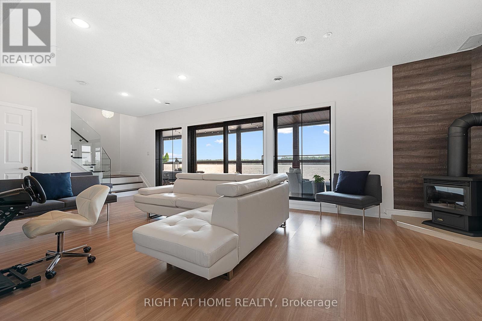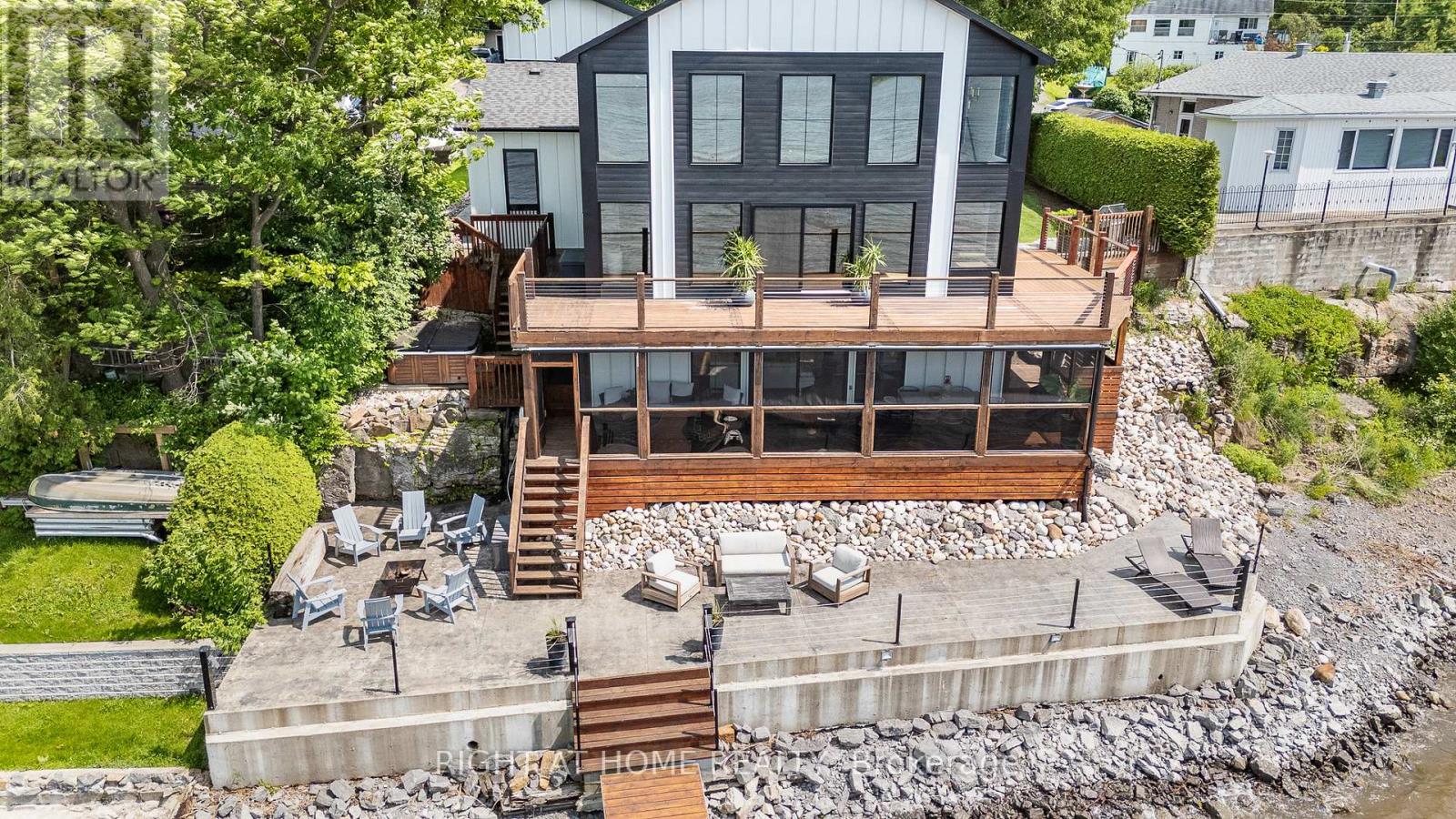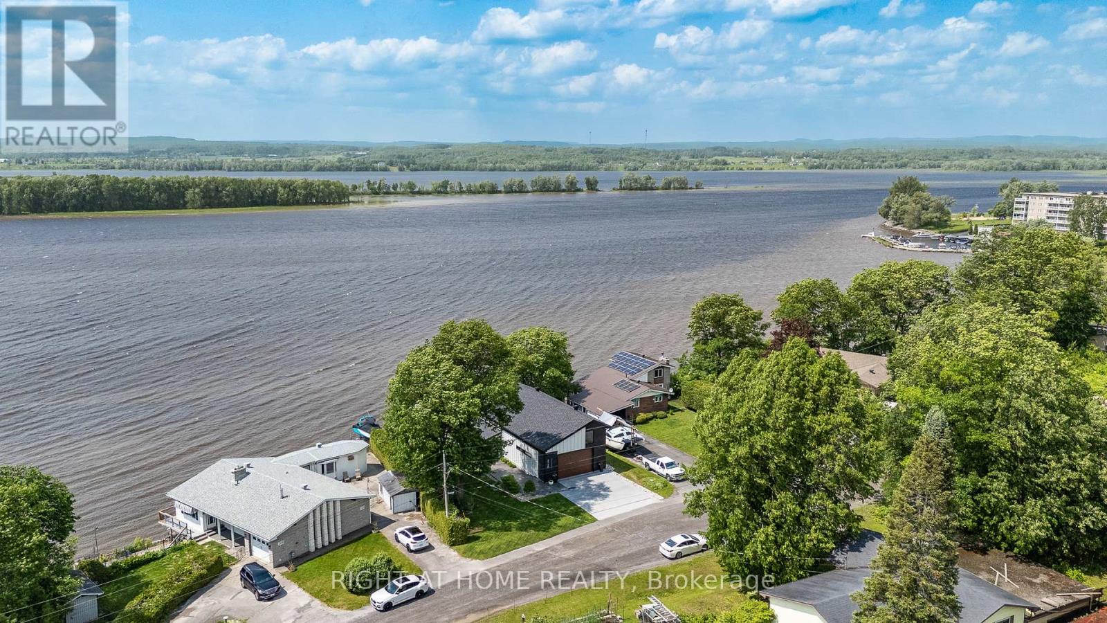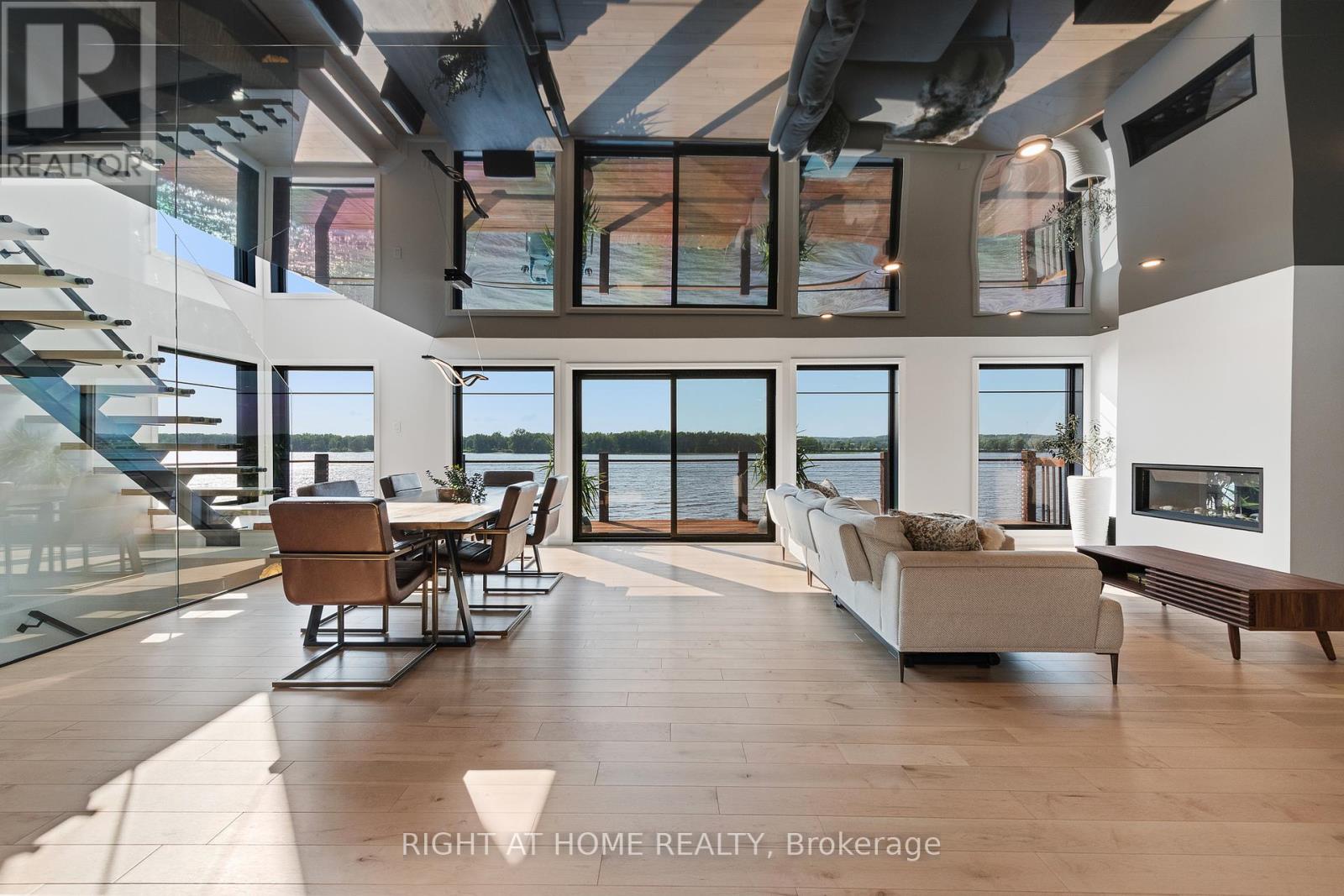 Welcome to 2120 Du Chateau Your Waterfront Dream Home! Experience breathtaking sunsets and stunning views of the Ottawa River from this absolutely gorgeous waterfront property. This elegant yet modern 3-bedroom, 3-bathroom home seamlessly blends luxury living with modern beauty. From the moment you arrive, the heated stamped concrete walkway sets the tone for the sophistication within. Step inside a spacious and bright foyer, thoughtfully designed with a cozy workspace nearby and provides direct access to the laundry/mudroom, which in turn gives access to a massive 42 x 25 heated garage perfect for storing toys with a 13 to 17 foot ceiling height. The entire second level is dedicated to the primary suite, boasting a spectacular wall of windows overlooking the water, a spacious walk-in closet, and a sleek 5-piece ensuite. On the main floor, the generous kitchen is a chef's delight, complete with a walk-in pantry and open concept design that flows effortlessly into the living and dining rooms. Both rooms feature a stretch ceiling which gives an added height effect and a wall of windows that open onto a full-width deck the perfect spot to enjoy your morning coffee or evening gatherings. Two additional bedrooms, a 3-piece bath, and a powder room complete the main level. The lower level offers a versatile family room with access to a screened-in porch, ideal for relaxing without worrying about mosquitoes. Located in a convenient in-town waterfront setting, this home perfectly combines modern luxury with the tranquility of nature. Don't miss the chance to own this spectacular retreat where every detail is designed for comfort and style. for additional pictures and 3D walkthrough click on the links below (id:47966)