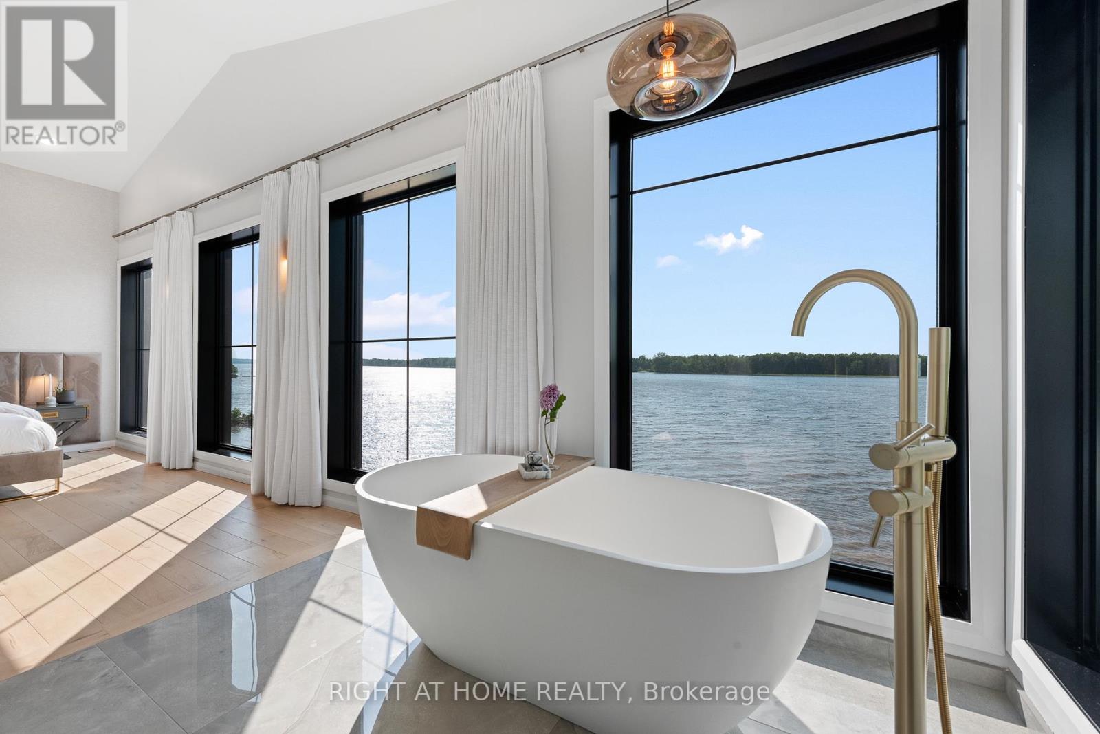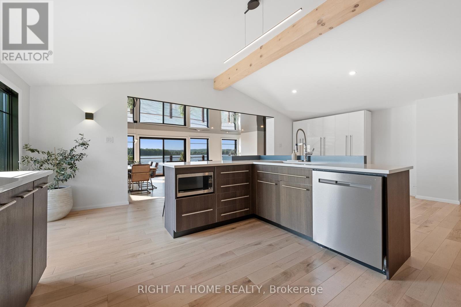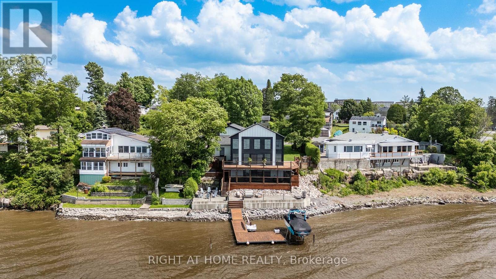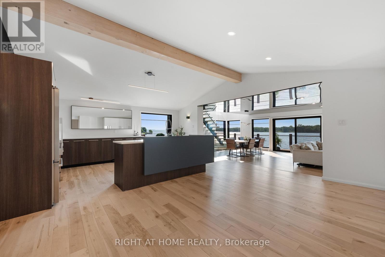 Welcome to 2120 Du Chateau Your Waterfront Dream Home! Experience breathtaking sunsets and stunning views of the Ottawa River from this absolutely gorgeous waterfront property. This elegant yet modern 3-bedroom, 3-bathroom home seamlessly blends luxury living with modern beauty. From the moment you arrive, the heated stamped concrete walkway sets the tone for the sophistication within. Step inside a spacious and bright foyer, thoughtfully designed with a cozy workspace nearby and provides direct access to the laundry/mudroom, which in turn gives access to a massive 42 x 25 heated garage perfect for storing toys with a 13 to 17 foot ceiling height. The entire second level is dedicated to the primary suite, boasting a spectacular wall of windows overlooking the water, a spacious walk-in closet, and a sleek 5-piece ensuite. On the main floor, the generous kitchen is a chef's delight, complete with a walk-in pantry and open concept design that flows effortlessly into the living and dining rooms. Both rooms feature a stretch ceiling which gives an added height effect and a wall of windows that open onto a full-width deck the perfect spot to enjoy your morning coffee or evening gatherings. Two additional bedrooms, a 3-piece bath, and a powder room complete the main level. The lower level offers a versatile family room with access to a screened-in porch, ideal for relaxing without worrying about mosquitoes. Located in a convenient in-town waterfront setting, this home perfectly combines modern luxury with the tranquility of nature. Don't miss the chance to own this spectacular retreat where every detail is designed for comfort and style. for additional pictures and 3D walkthrough click on the links below (id:47966)