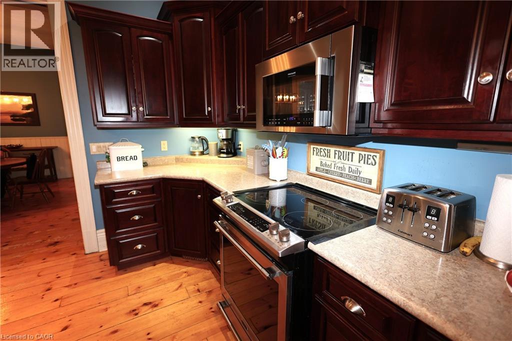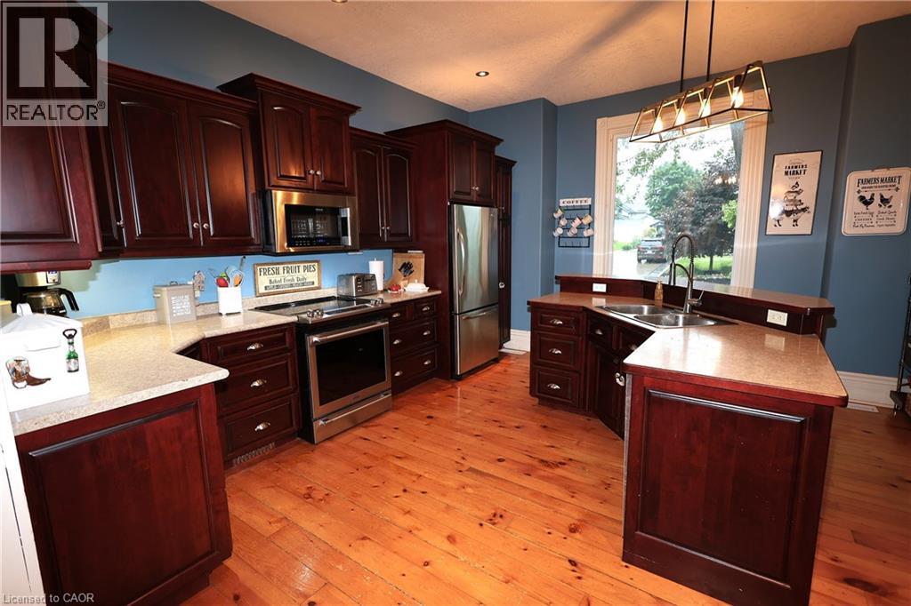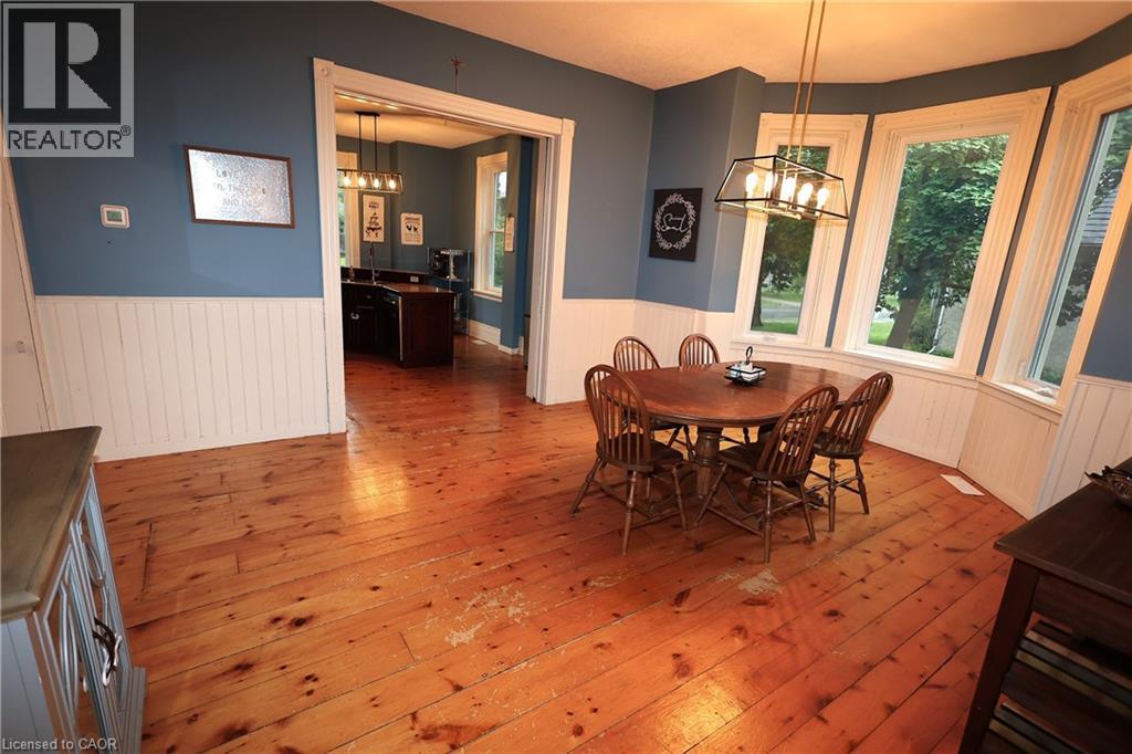 Move-In Ready Century Home with Heated Shop & In-Law Potential! Welcome to your family’s next chapter! This fabulous yellow-brick century home offers the charm of yesteryear with modern updates in all the right places. Situated on a generous 82’ x 132’ landscaped lot, this home is ideal for growing families seeking comfort, character, and convenience. Step onto the inviting front porch, through the stately red door, and into a spacious foyer with soaring 10’ ceilings that showcase the grandeur of this classic home. Original pine floors, pot lights, and bright principal rooms create a warm, welcoming atmosphere throughout. The heart of the home is the updated kitchen featuring stainless steel appliances, laminate countertops, and a massive center island perfect for meal prep or casual family breakfasts. Adjacent is the formal dining room and a large family room/mudroom with sliders to two decks — perfect for summer entertaining with approx. 460 sq ft of decking. The main floor has updated 2-piece bath and convenient laundry. Upstairs, discover 4 bedrooms, including a spacious primary suite above the addition, complete with a 4-piece ensuite, large walk-in closet, sitting area, and laminate flooring. The original bedrooms feature charming pine floors, and the main bath offers a double vanity and walk-in shower. Mechanical upgrades include roof, electrical & plumbing, vinyl windows and 2 gas furnaces. Tradesman will love the crown jewel — a 24’ x 32’ heated, plumbed, and insulated shop built in 2017 featuring 2 bays plus a rear drive-through, gas heater, 60 amp subpanel and R22 wall & R50 attic insulation. This home sits on a quiet, family-friendly street close to downtown Harriston and has easy highway access. Don’t miss this rare blend of charm, space, and functionality — ready for your family to move right in! (id:47966)