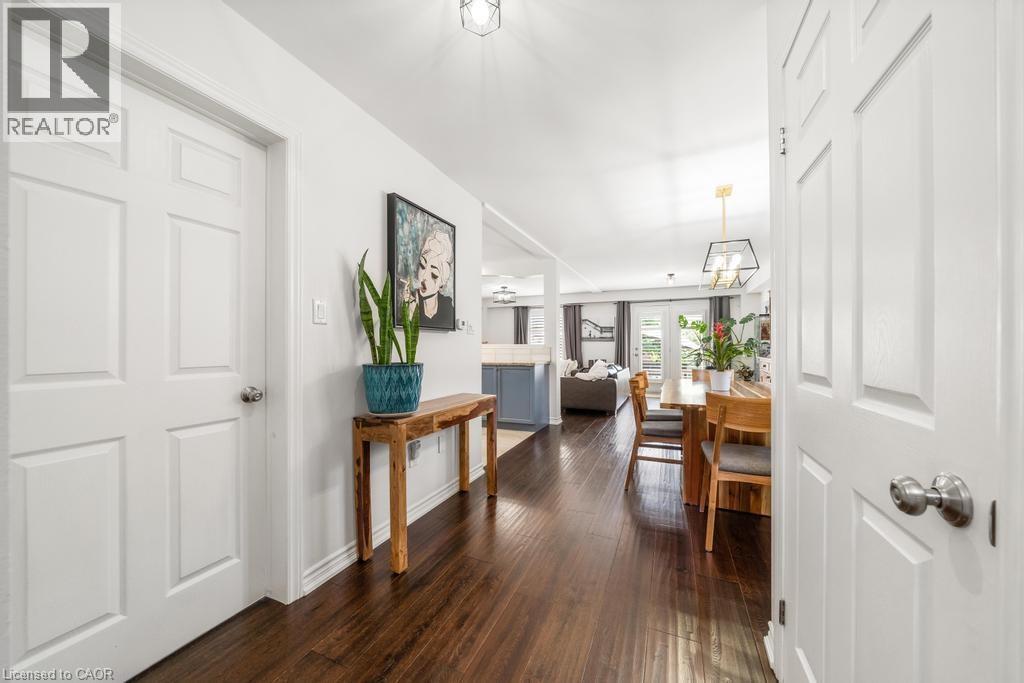 Welcome to 12 Valridge Court in Ancaster, a beautifully updated 3-bedroom, 2.5-bathroom home situated on a quiet court in a highly sought-after, family-friendly neighbourhood. Offering over 1,800 sq. ft. above grade plus a fully finished basement with vinyl flooring, this home blends style, comfort, and functionality. The main floor features soaring ceilings in the foyer, an updated staircase, a 2-piece bathroom, main floor laundry with inside entry to the garage, and an open-concept layout with a refinished kitchen that includes granite countertops, subway tile backsplash, under-cabinet lighting, and brand-new stainless steel appliances (2024) with a gas stove. The kitchen flows seamlessly into the dining area and bright living room, complete with a cozy gas fireplace and walkout to your private backyard. Upstairs offers three spacious bedrooms with hardwood and tile flooring, an updated 4-piece main bath, and a primary suite featuring a modern 4-piece ensuite with a walk-in glass-enclosed shower and corner soaker tub. The exterior boasts a 32 x 123 ft lot with a new rear deck (2022) and pergola, new asphalt driveway (2025), irrigation system, and updated shingles (2017). Additional upgrades include a new furnace and A/C (2024) and updated lighting fixtures throughout. Located close to top-rated schools, highway access, parks, and all major amenities including shopping, dining, and community centres, this home is the perfect blend of elegance and everyday convenience. (id:47966)