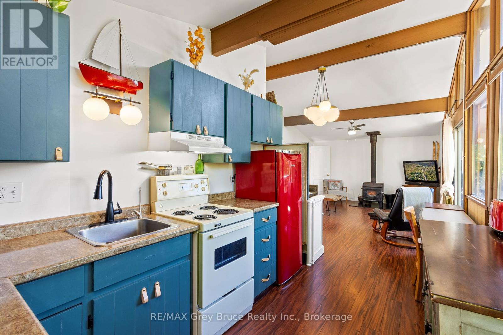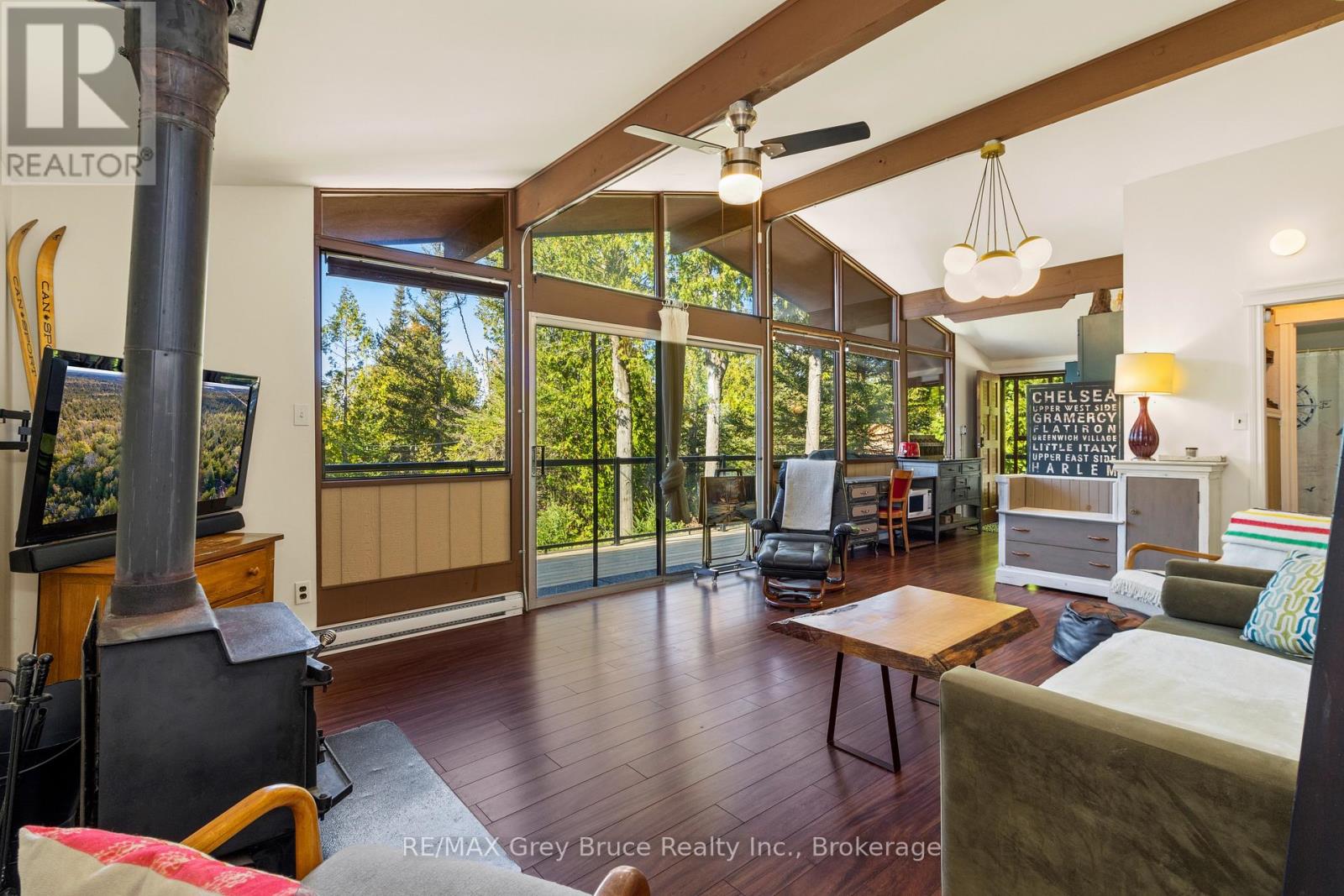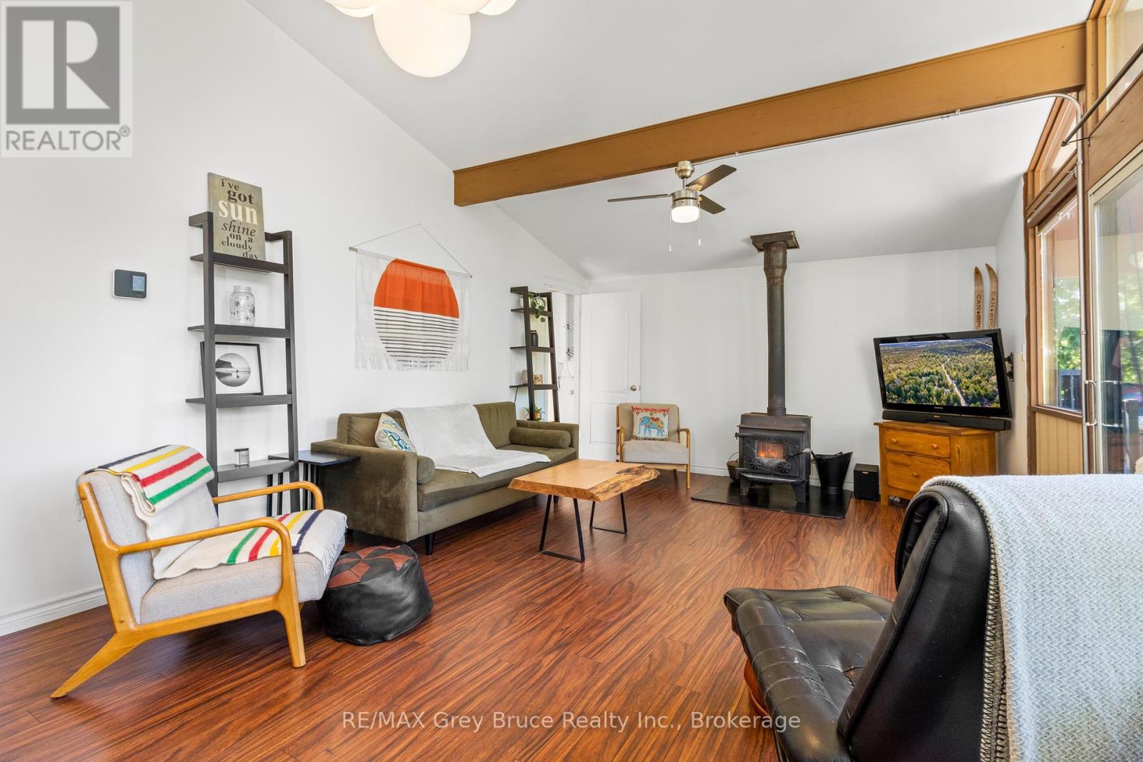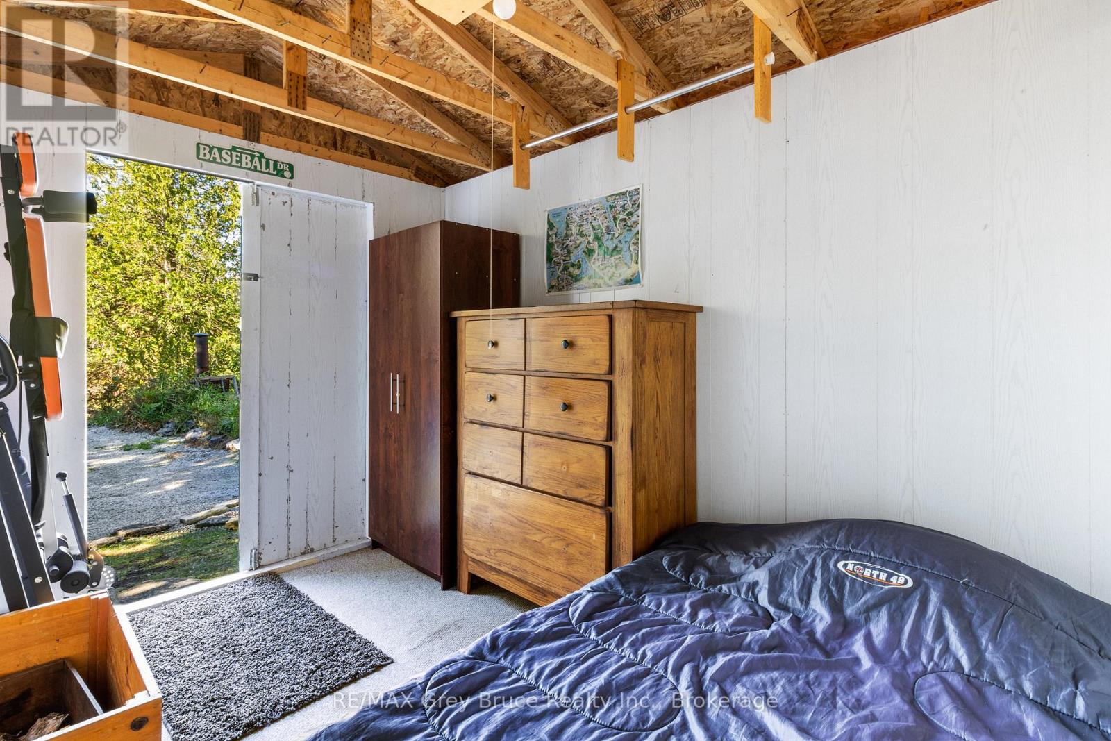 Your Bruce Peninsula Retreat Awaits! Discover peaceful country living on this 3.9-acre property in the heart of the beautiful Bruce Peninsula. Conveniently located between Tobermory and Lion's Head, this private haven offers the perfect setting to pursue your homesteading dreams. Grow your own garden, raise small animals, and enjoy local wildlife - all in your own backyard. Surrounded by mature cedar trees, the property offers seclusion, fresh air, and the natural soundtrack of birdsong. In this dark sky community, starry nights are a stunning bonus while you sit around the crackling campfire. The year-round home or cottage features 2 bedrooms and a spacious laundry room that could easily serve as an office or additional sleeping area. The open-concept living space is bright and airy, with vaulted ceilings, easy-care flooring, and a wall of windows that invite the outdoors in. A cozy wood stove adds warmth and charm, perfect for curling up with a good book. Step out to the deck from either the kitchen or living room ideal for BBQs, entertaining, or simply enjoying the quiet surroundings. Even the full 4-piece bathroom features a vaulted ceiling, continuing the homes spacious feel throughout. Need extra space? Two bunkies and multiple storage sheds provide plenty of room for guests or gear. The property is offered mostly furnished and move-in ready. A lightly used road divides the property, offering a natural walking trail, while the paved main road is municipally maintained year-round. Outdoor enthusiasts will love the proximity to the Lindsay Tract Trails and the Bruce Trail, while public water access and a small boat launch are just minutes away. Enjoy your own personal walking and ATV trail complete with bridge over the creek, leading to the back of the property! Whether you are looking for a peaceful getaway or a full-time lifestyle change, this property has everything you need to start living your country dream. (id:47966)