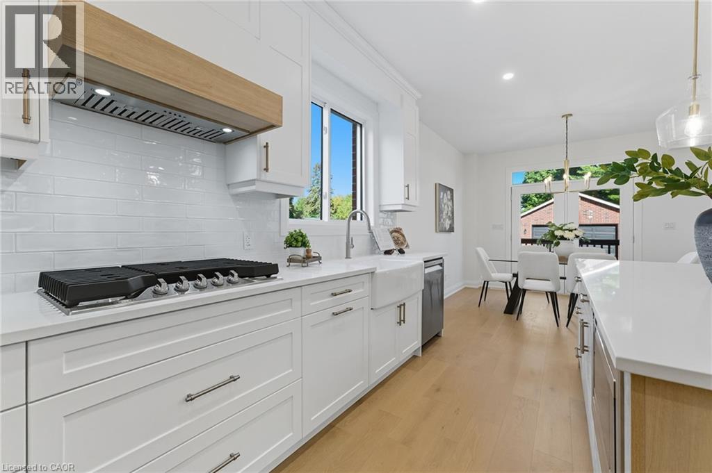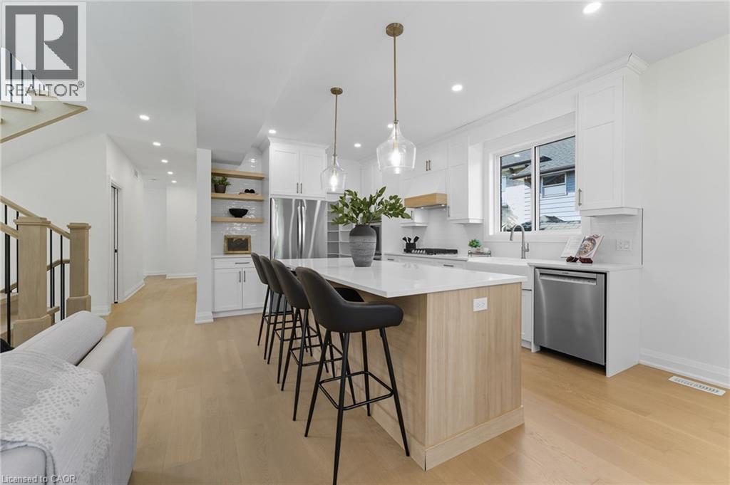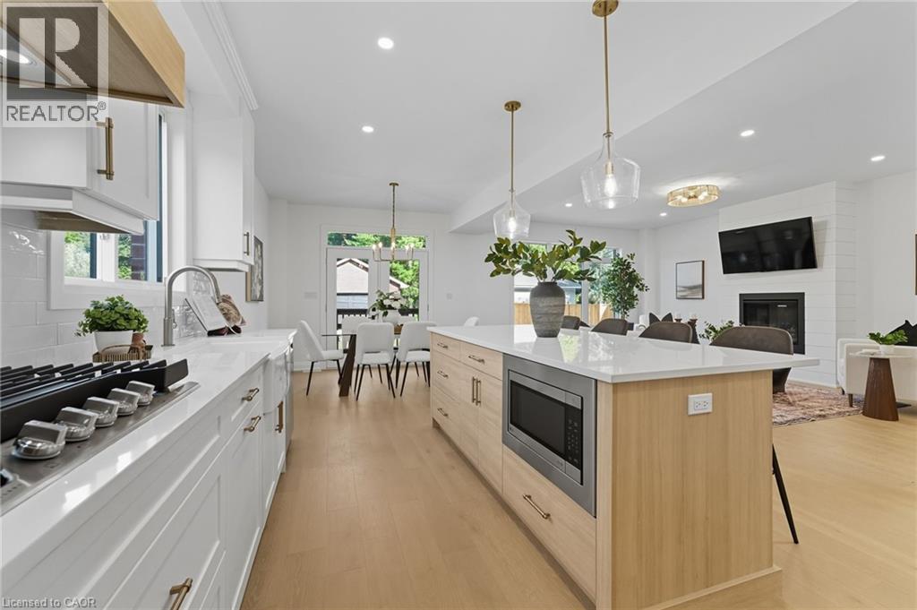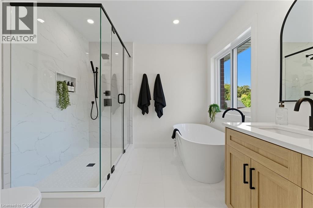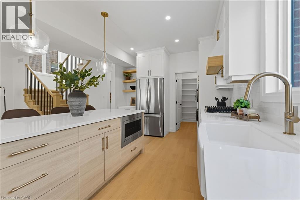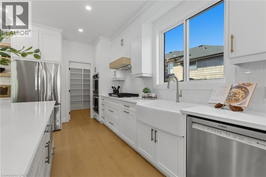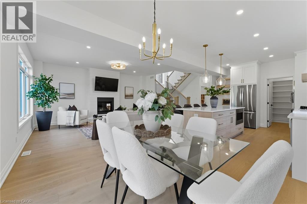 Welcome to 30 Manley Street—a show-stopping luxury residence in the heart of the sought-after village of Ayr, where timeless small-town charm meets modern elegance. This exceptional home offers over 3,400 sq. ft. of finished living space on a private, pool-sized lot on a quiet dead end street—just steps from parks, trails, schools, and everyday amenities. Inside, you’ll find 4+1 bedrooms, 3.5 baths, and upscale finishes throughout, including hardwood floors, quartz counters, and custom cabinetry. The chef’s kitchen is designed to impress with stainless steel appliances, a gas range, double oven, 9-ft island, coffee/wine bar, walk-in pantry, and abundant storage. The open-concept main floor also features a spacious living room with gas fireplace, a versatile bedroom/office, a stylish powder room, and an oversized mudroom with side entry. Upstairs, the custom white oak staircase leads to 3 generous bedrooms, each with its own walk-in closet. The luxurious primary suite showcases a spa-inspired 5-piece ensuite, while a convenient upper-level laundry room and main bath completes the space. The fully finished lower level is perfect for entertaining, offering a large recreation area, a full bathroom, and an additional bedroom. Outdoors, enjoy a large detached 21 x 21 garage, parking for 8 vehicles, and a family-sized yard—ready to bring your backyard dreams to life. Experience the warmth of Ayr’s vibrant community and the convenience of being just minutes from the 401. This home truly has it all—space, style, and location. Call your REALTOR® today as this one won't last long. (id:47966)