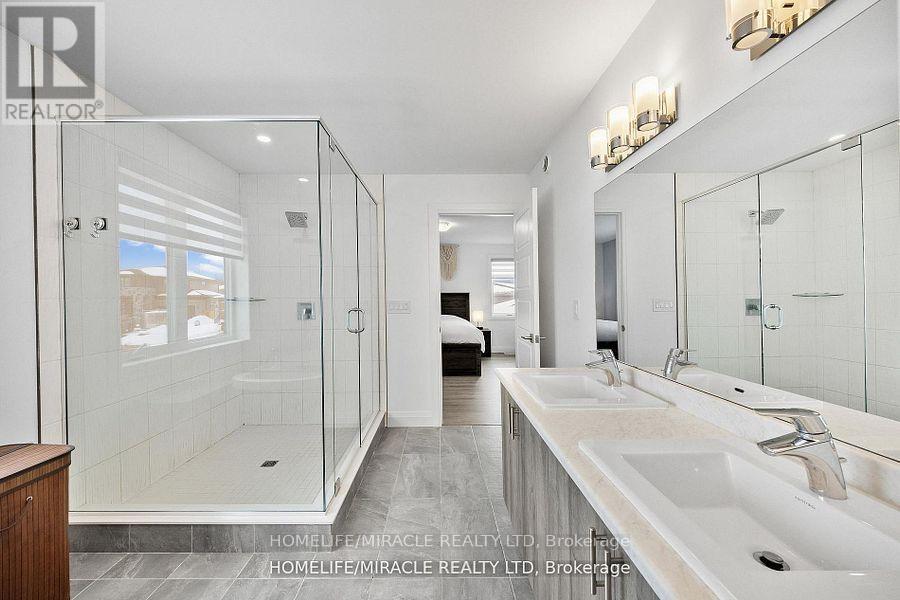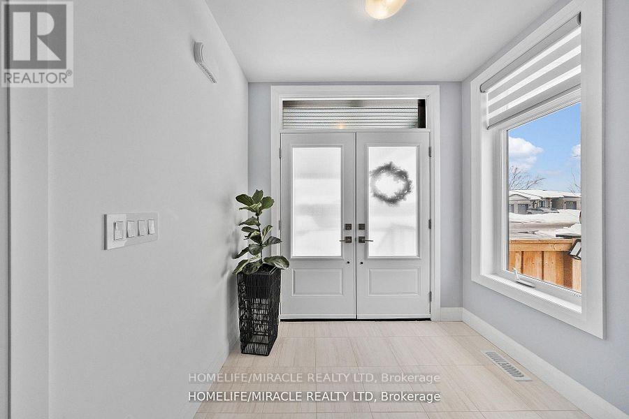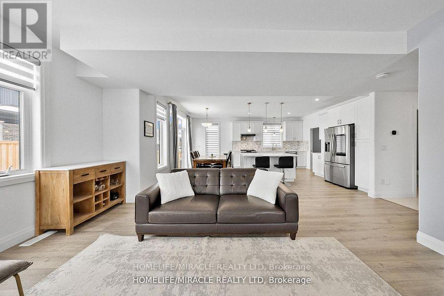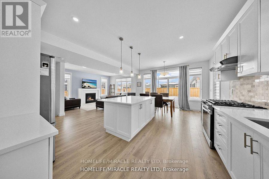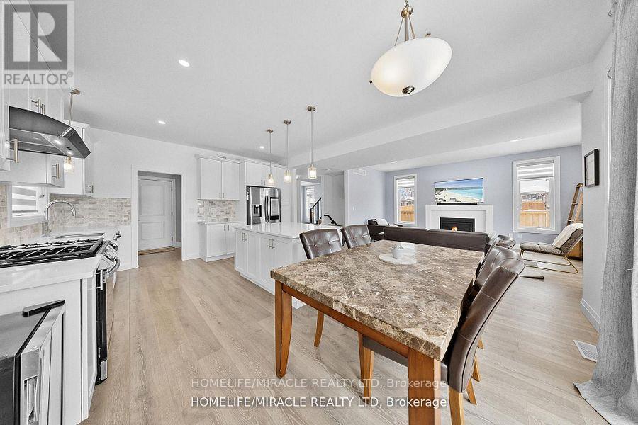 Welcome To 43 Prairie Run ,Beautiful Corner unit In Colborne! This 4 Year-Old Fidelity Homes- Built Property Is A Stunning Find Boasting Over 2000 Sq Ft , Offering 3 Bedrooms And 3 Bathrooms, Front Elevation With Modern Stone Design With Upgraded Garage Doors And Wider Porch/Stairs. The Open-Concept Design Seamlessly Blends Style And Functionality. The Modern Kitchen Is A Chef's Dream, Featuring A Sleek Tile Backsplash, Recessed Lighting, A Spacious Island Breakfast Bar With Elegant Pendant Lighting, Quality S/S Appliances, And Ample Workspace. The Inviting Living Room, Complete With A Cozy Fireplace, Open Concept With Dining Which Leads Into W/O Patio With Newly Built Deck. The Primary Bedroom Is A Serene Retreat, Boasting A Luxurious Ensuite With A Double Vanity, A Large Glass-Enclosed Shower, And A Separate Soaking Tub. Two Additional Bedrooms With Jack And Jill. Conveniently Located Close To Town Amenities And With Quick Access To Highway 401. Recently Fully Fenced With Entrance To BBQ, 5 Commercial Grade Security Camera Features Night Vision, Geofencing , Built In Alarm , Ethernet And Access Point Installed Upstairs For Hardwired Internet Connection Ideal For (id:47966)