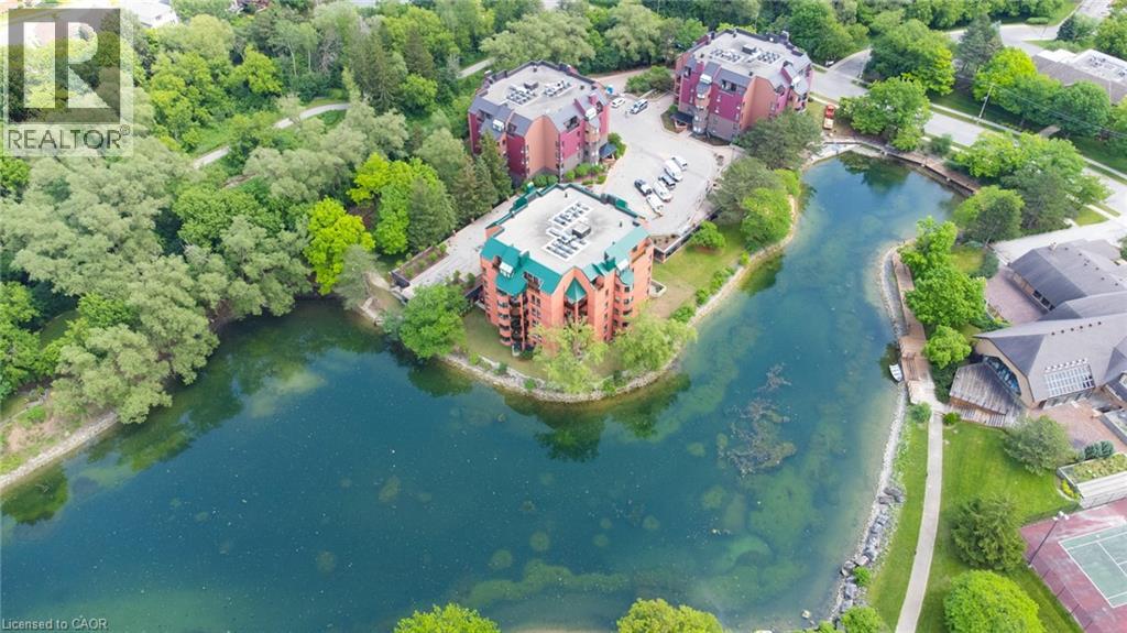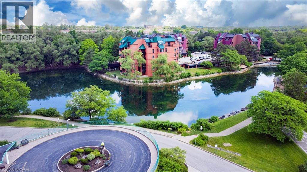 This beautifully maintained 1,760 sq ft condo at 54 Blue Springs Drive, Unit 41 offers a rare opportunity to own in one of Waterloo’s most peaceful and picturesque communities. Designed for comfort and flow, the open-plan layout boasts multiple living and dining spaces, perfect for entertaining or quiet evenings by the fireplace. Oversized windows flood the space with natural light and showcase stunning views of the surrounding pond and forested trails. The thoughtfully designed galley kitchen features white cabinetry, granite countertops, and a stylish tile backsplash. Step out to the private balcony and enjoy coffee or cocktails while surrounded by birdsong and gentle breezes. With two spacious bedrooms, two bathrooms, and in-suite laundry, this home offers the ideal balance of style and practicality. The well-managed building includes underground parking, a storage unit, guest parking, BBQ area, and private trails, all on a beautifully landscaped property with water features. This is the ideal lifestyle for downsizers, professionals, or anyone seeking low-maintenance, nature-connected living without compromise. (id:47966)