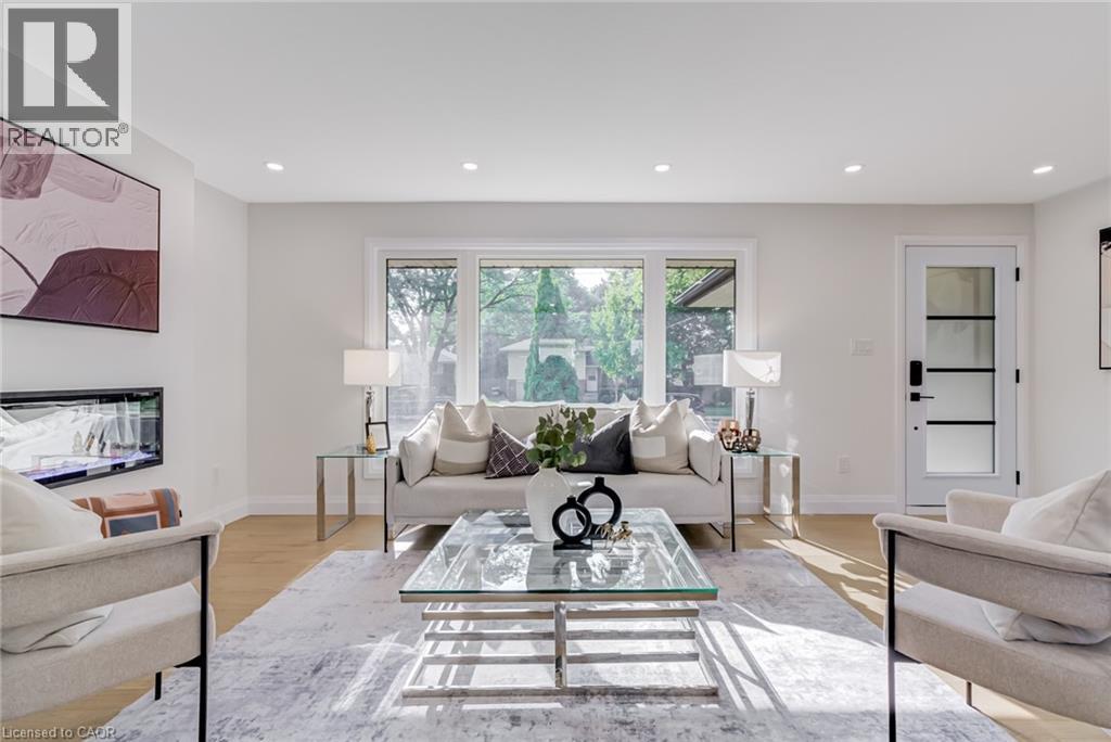 Stunning fully renovated bungalow on a rare 60-ft lot in the sought-after Centremount neighbourhood, walking distance to the Mountain Brow. This 3 + 2 bed, 2 kitchen, 3 full bath home is loaded with premium upgrades: custom white oak kitchen with quartz waterfall island and gas stove, heated floors in all bathrooms, white oak staircase, wide plank hardwood on the main level, and premium vinyl plank in the basement. In- law suite with full kitchen, bathroom, second laundry, and separate entrance. Pot lights throughout, frameless glass showers, new windows and doors, new hot water tank (owned), all new appliances, quartz counters, new electrical, and electric fireplaces on both levels. Exterior upgrades include new posts, railings, and more. Lower level offers 2 beds, 2 full baths (including ensuite), walk-in closet for the primary bedroom, and a full kitchen. Walk to Bruce Park, Mountain Brow trails, and Concession Street shops and cafés. A rare blend of style, comfort, and quality — must be seen in person to truly appreciate. (id:47966)