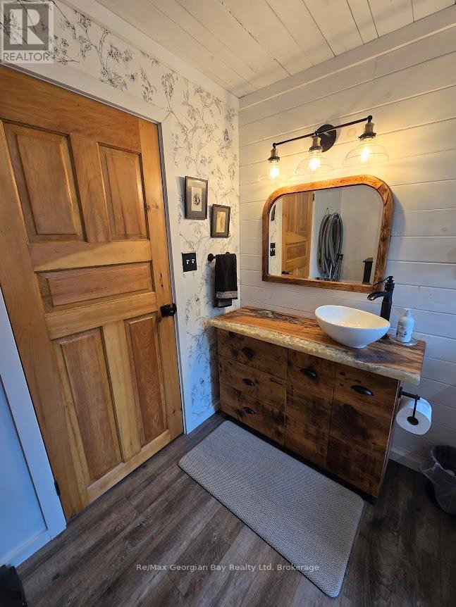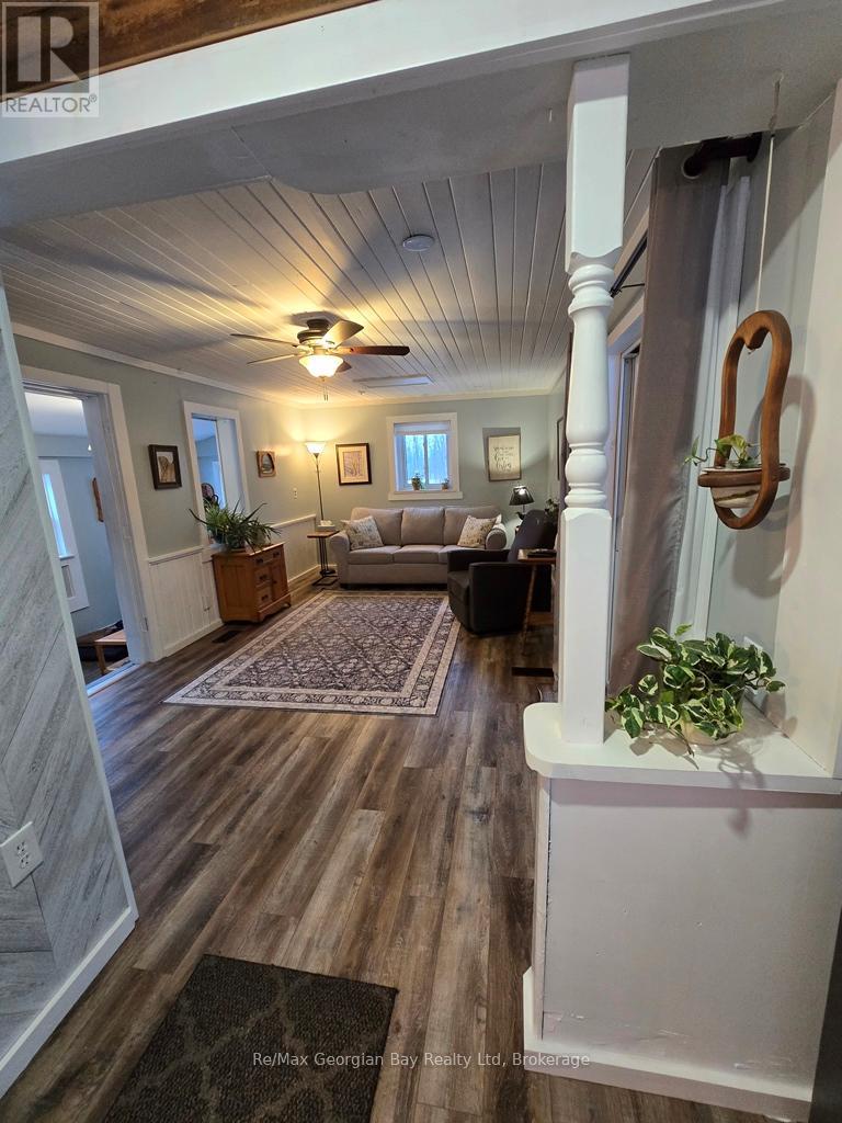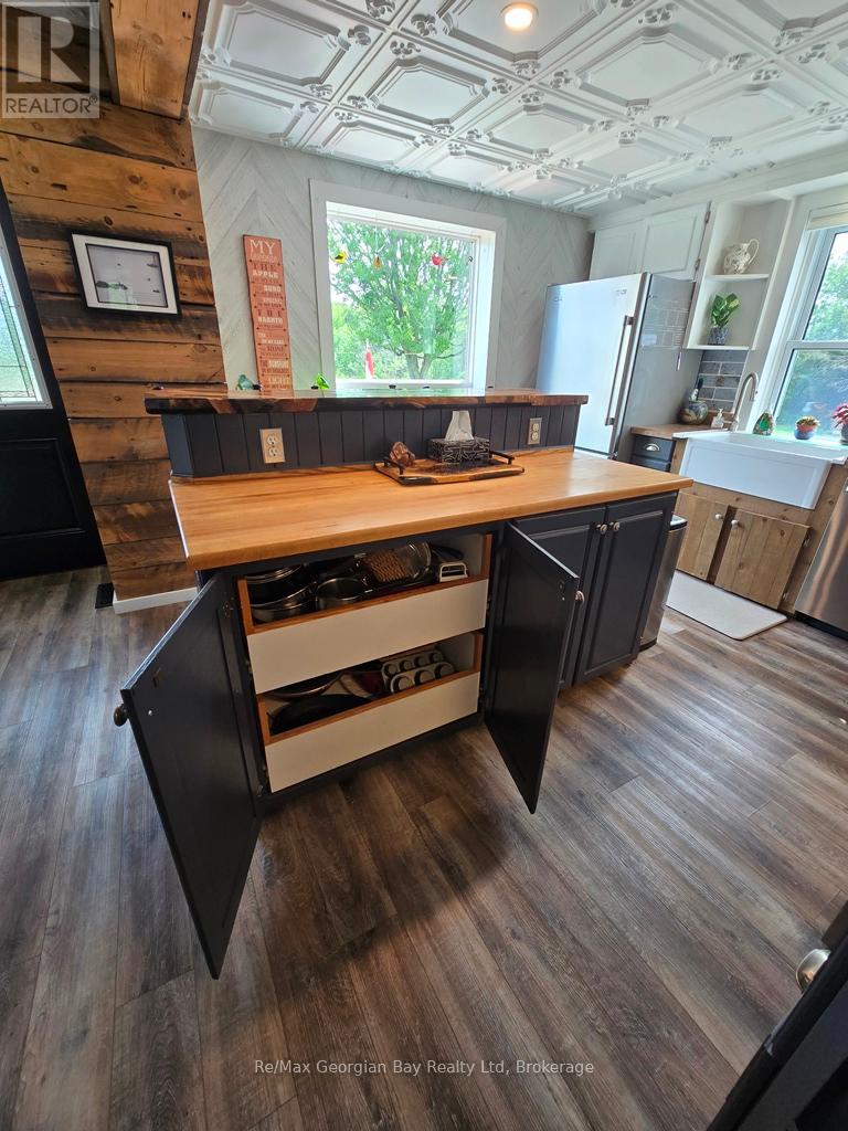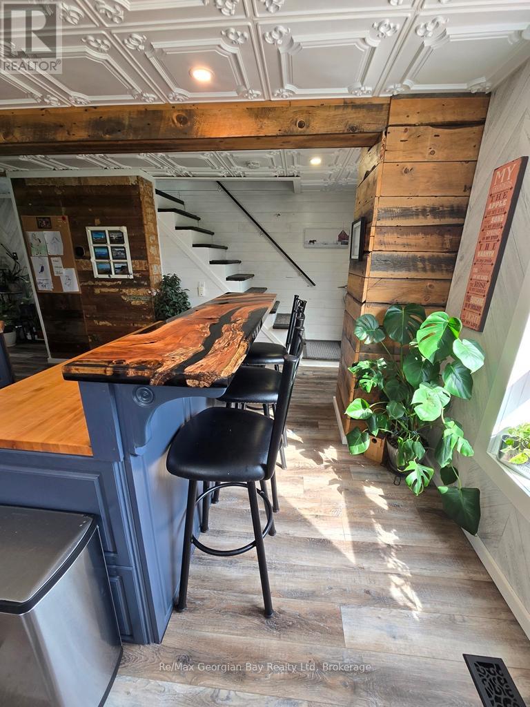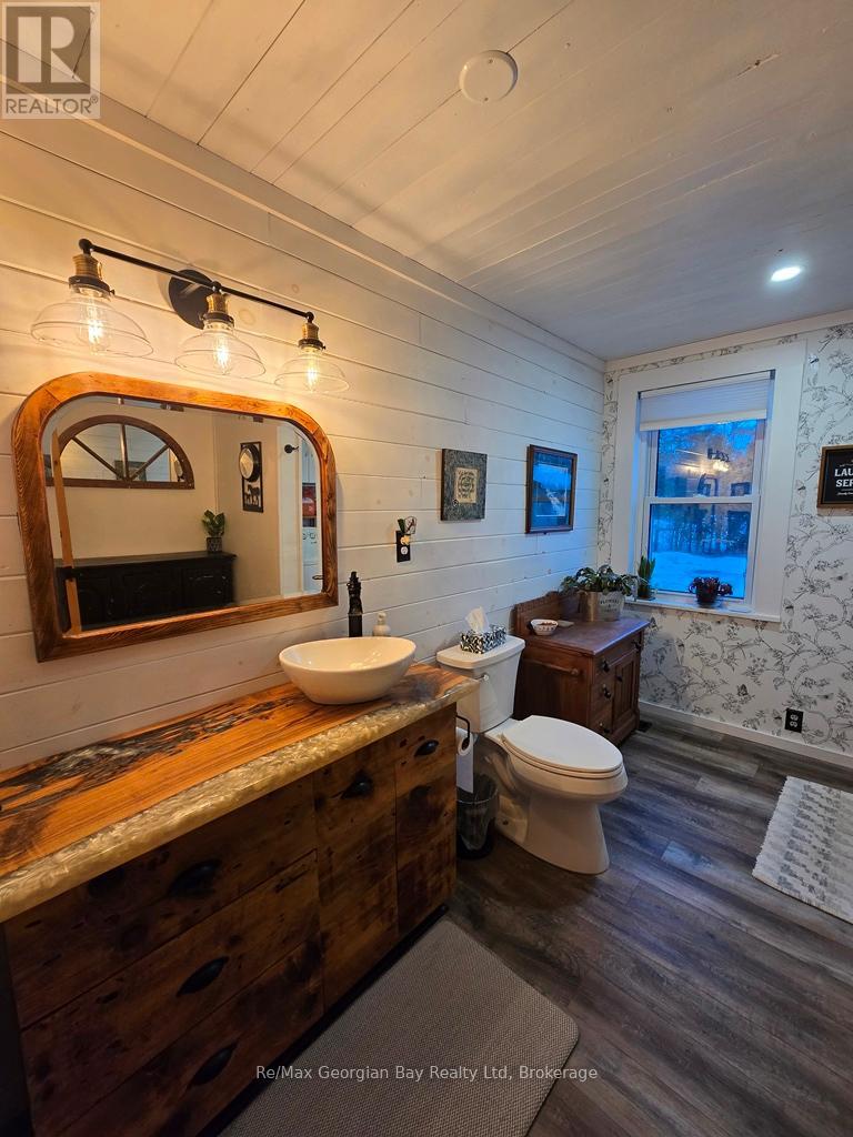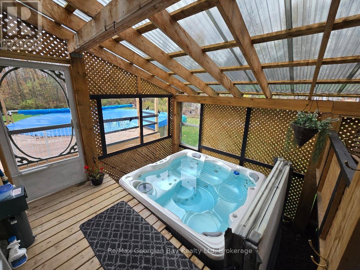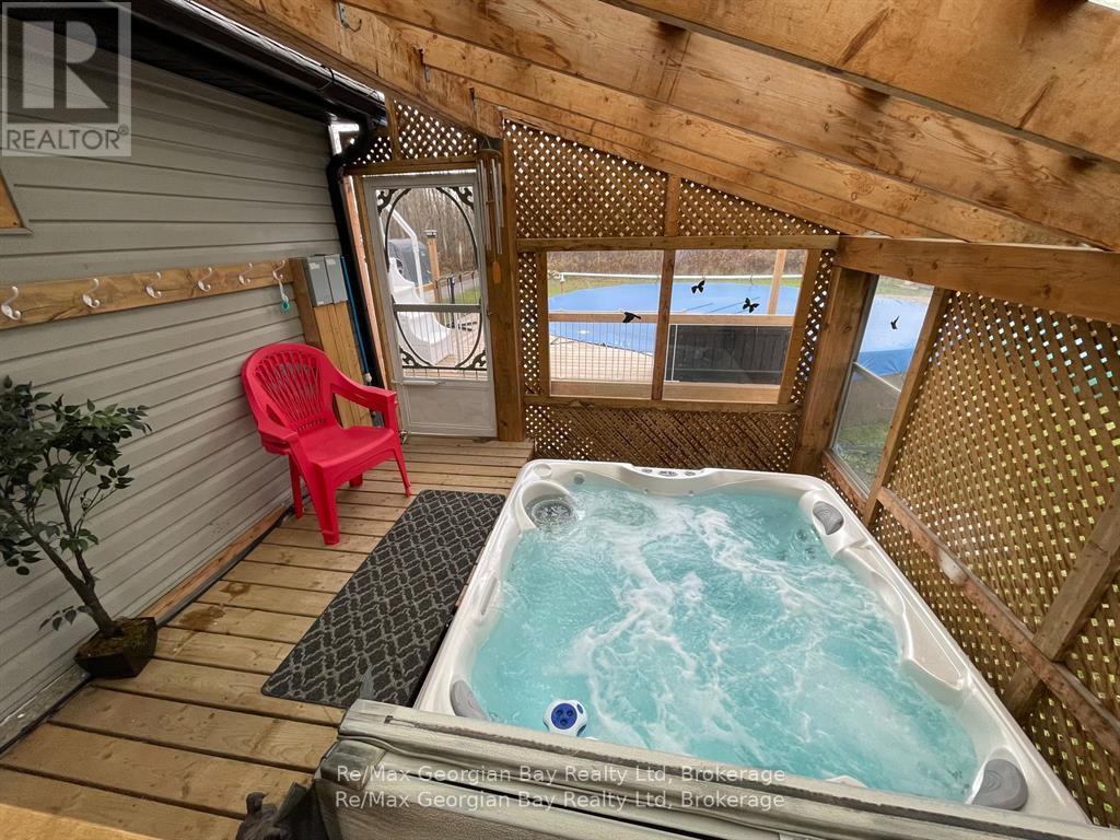 Come & enjoy what it is like to live on 1+ acres outside of town with the convenience of a short drive to all amenities and Hwy 400 access, as well to MacLean Lake, North River, Coldwater River & Matchedash Bay for some great fishing or boating to Georgian Bay. This solid, charming home features level floors, 3 bedrooms with the 3rd currently set up as a walk in closet for the Master Bedroom that has a King Size Bed & 2 bathrooms (main floor 2 pc is plumbed for tub/shower). The current owners have loved living here for 7 + years and have enjoyed many a coffee on the front deck watching the sunrise, nesting blue birds/wrens/purple martins or the shaded area of the deck on the warmer summer days & evenings is amazing. Features include an above ground pool (can be removed by seller should you not wish to have it) a covered porch with a hot tub & sitting area to enjoy listening to the rain on the deck with a BBQ line hup & a walk out to the pool making this area great for year round enjoyment. Completed upgrades include siding with exterior insulation, roof boards with rain shield & shingles, soffit, facia, eavestrough, windows doors, insulated & silent openers on the garage doors, drilled well, furnace, AC, flooring throughout, main floor laundry, both bathrooms updated, kitchen antique ceiling with pot lights, farm sink, pot drawers, stainless appliances, ice maker/dishwasher/stove with a built in thermometer, dishwasher, backsplash, vinyl click flooring, custom live edge/epoxy counter & bath vanity, barn board beams, spray foamed basement, 200 amp service with 60 panel to 24' x 36' garage which features a heated/insulated man cave with pellet stove & Window AC along with work benches, & 2 bays with loft storage and a large fenced yard for the kids & dog make this truly a must see home to appreciate all it has to offer so call today to check it out. (id:47966)
