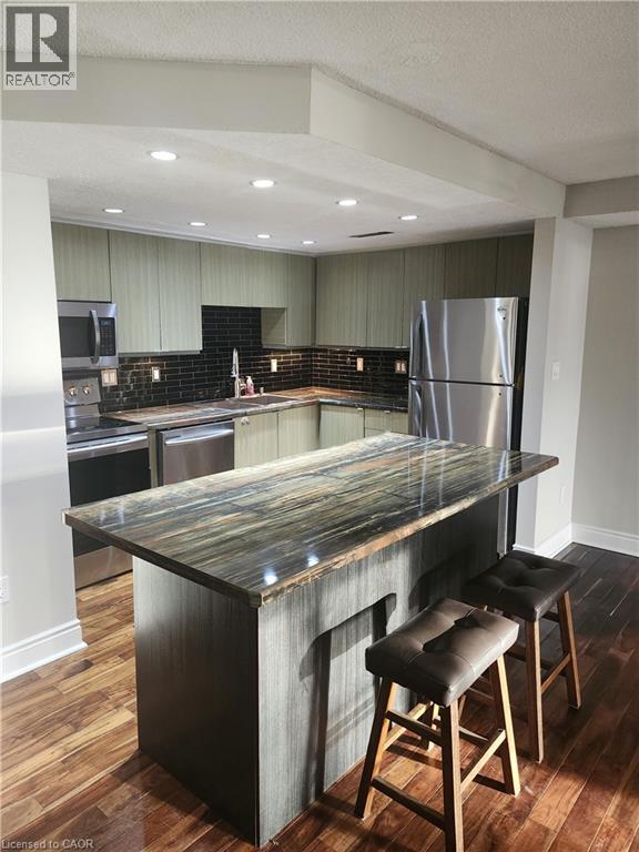 Low Maintenance Fees! Updated 1-Bedroom + Den Townhome in The Brownstones Welcome to #223–895 Maple Ave, a beautifully updated 1-bedroom + den, 1-bathroom townhome in the highly sought-after Brownstones community of Burlington. Offering 950 sq. ft. of well designed space, this charming home perfectly blends comfort, style, and convenience, ideal for first-time buyers or young professionals. The open-concept living and dining area offers a bright, airy layout, perfect for entertaining or relaxing after a long day. The renovated kitchen features a large island and sleek appliances that make cooking a pleasure. A rare bonus: the den is a flexible space that’s ideal for a home office, reading nook, or cozy sunroom. The primary bedroom is spacious and stylish, complete with ample closet space and a skylight that fills the room with natural light. You’ll also enjoy a beautifully updated 3-piece bathroom, private driveway parking, and low condo fees that make ownership worry-free. Set in an unbeatable location, just steps from Mapleview Mall, Starbucks, Longo’s, and more, with Burlington GO and highway access only minutes away. This property offers the perfect balance of lifestyle and convenience. Don’t miss this rare opportunity to own a move-in-ready gem in one of Burlington’s most desirable communities. (id:47966)